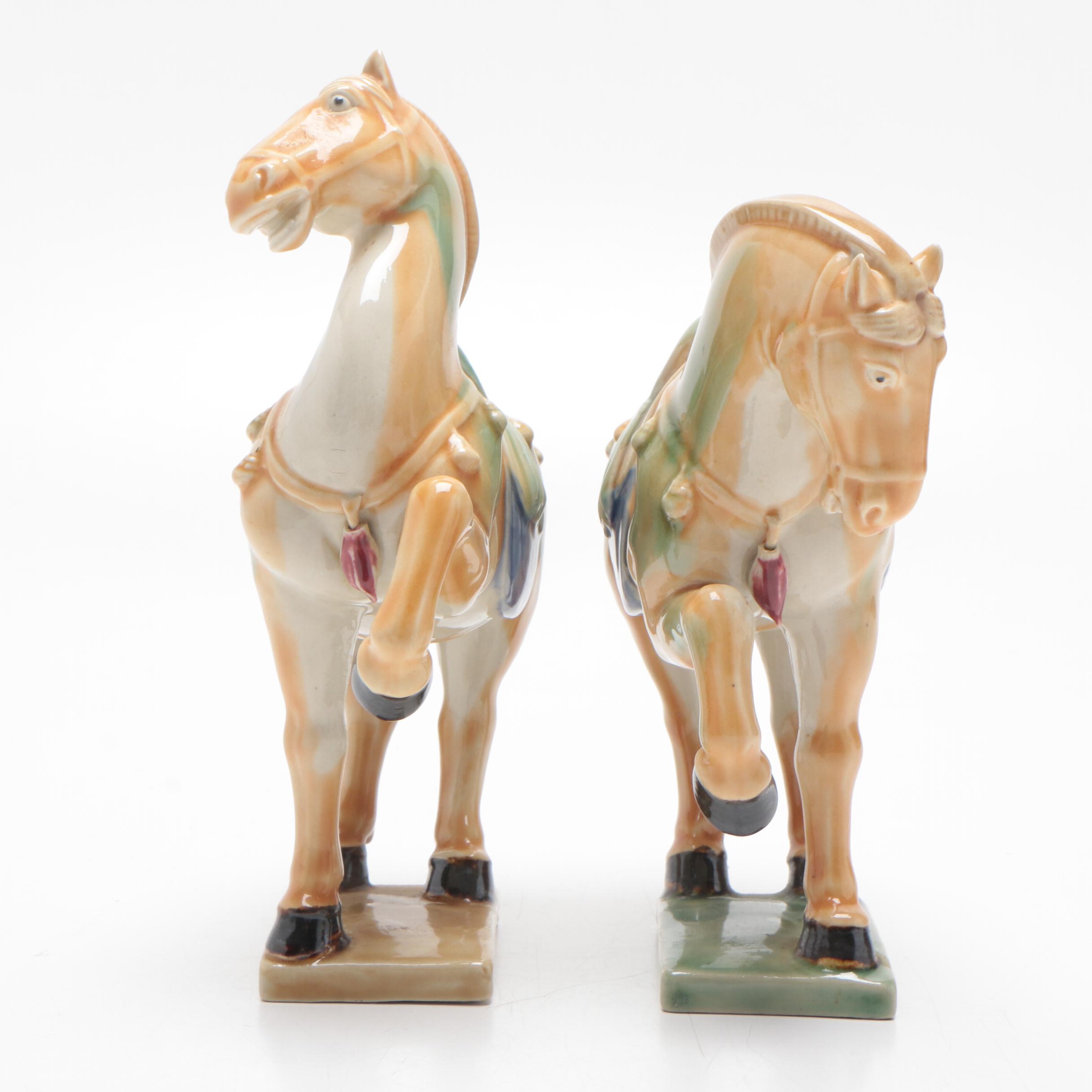 These wonderful ceramic horses in a beautiful turquoise glaze are replicas of horses produces during china's tang dynasty.