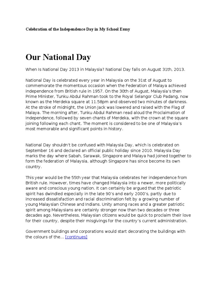 For a long time, national day celebrations occurred on merdeka day (31st august) and the number of years of independence was counted from 1957. Most events take place on merdeka square in kuala lumpur. This gesture was initiated by the first prime minister of malaysia, tunku abdul rahman back in 1957 at dataran merdeka. After an extended period of colonial rule, malaysia, at that time was known as malaya, finally gained sovereignty. Example essay national day celebration malaysia.